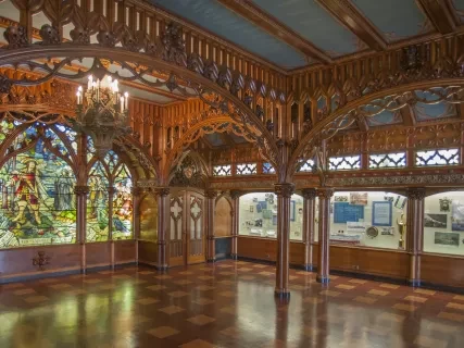 View ImageStepping through iStep back in time inside the reconstructed gentleman’s lounge of the City of Detroit III