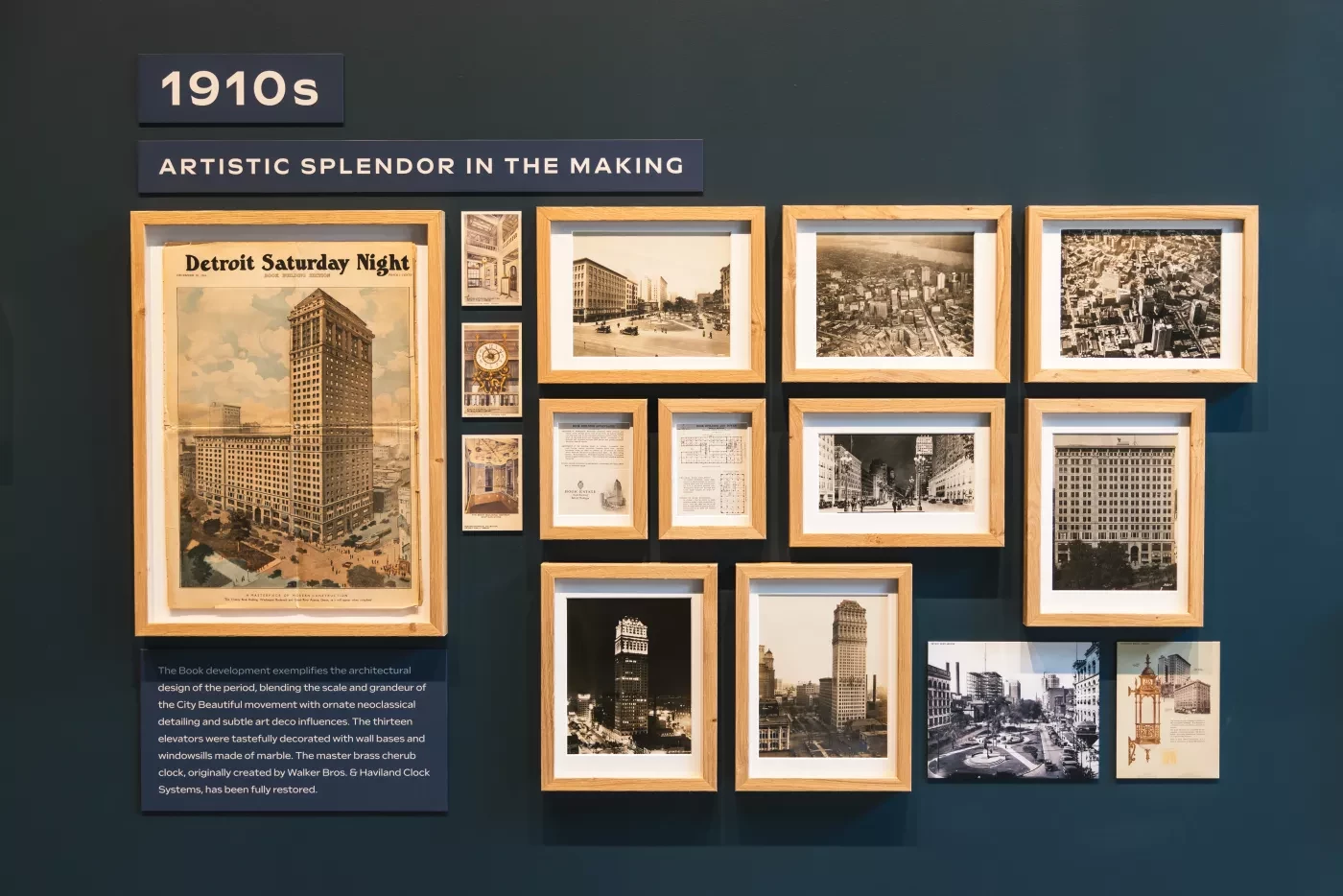 In 2023 Bedrock reopened Book Tower in downtown Detroit after a complete renovation. To highlight the landmark building’s 100-year history, the Detroit Historical Society has partnered with Bedrock to create a Historic Exhibition in the building’s lobby, featuring items items salvaged in the building’s renovation along with unique artifacts loaned by the Book family.