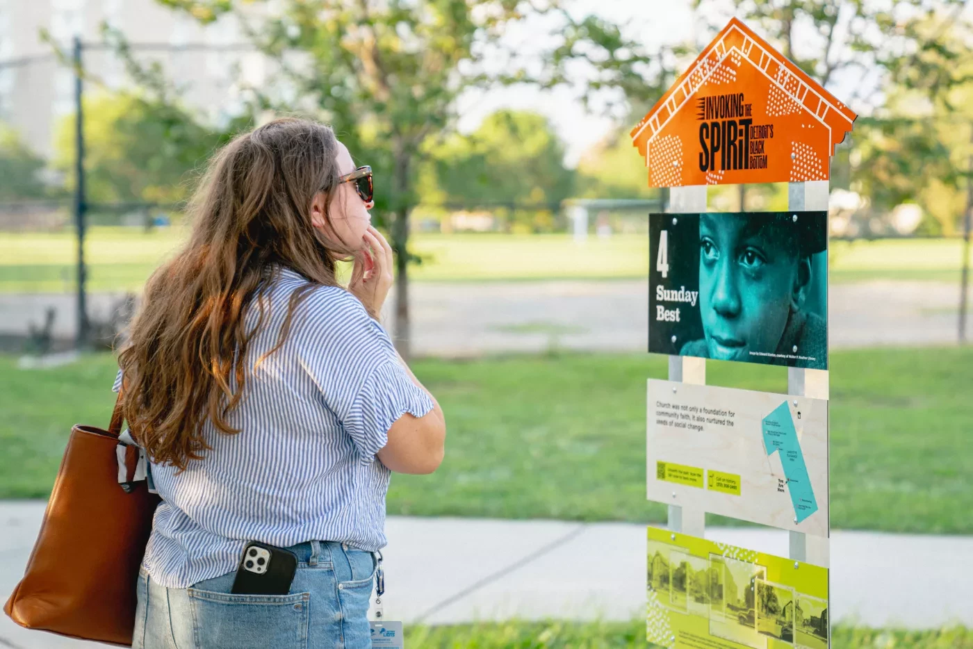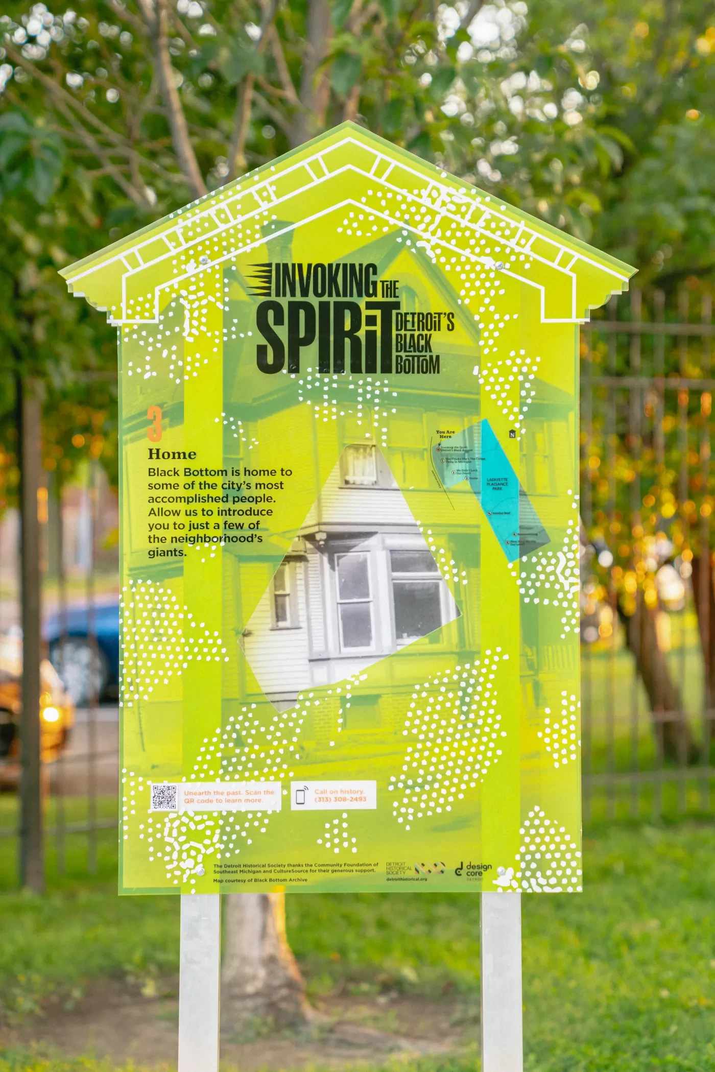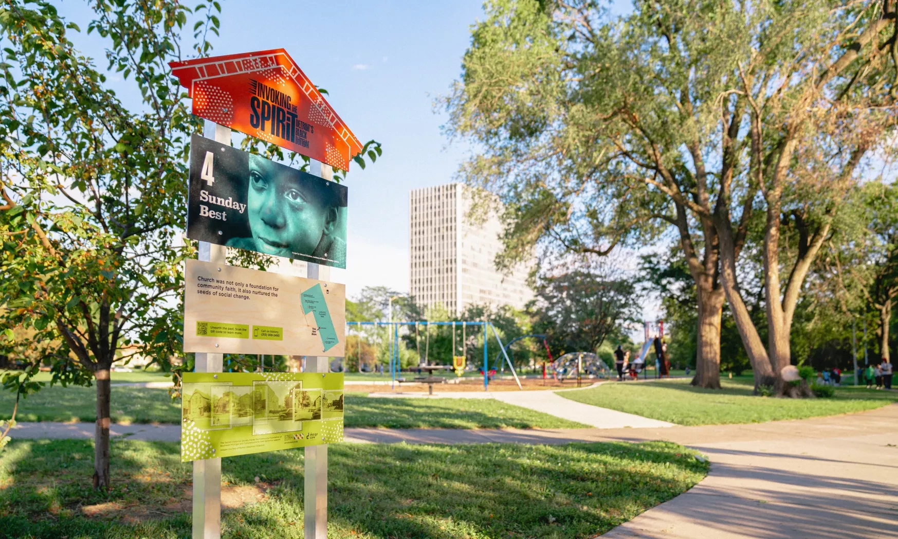 Invoking the Spirit: Detroit’s Historic Black Bottom is a dynamic, self-directed walking tour of Detroit's historic Black Bottom neighborhood, told through the lens of former residents and their descendants. The tour was created by the Detroit Historical Society, Design Core Detroit and Octane Design for the 2021 Detroit Month of Design, with community partnership from Bailey Park Neighborhood Development Corporation and Black Bottom Archives.