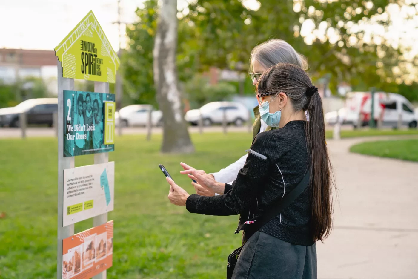 Each stop on the tour is indicated by a colorful marker with historical photos, information and QR codes. To explore further, just scan the code with your smart phone. Some elements can be accessed using any mobile device (no smart phone needed). Tourgoers will be in ‘conversation’ with Black Bottom residents through oral histories, images, video and everyday neighborhood narratives from the ones who knew it best – the neighbors.