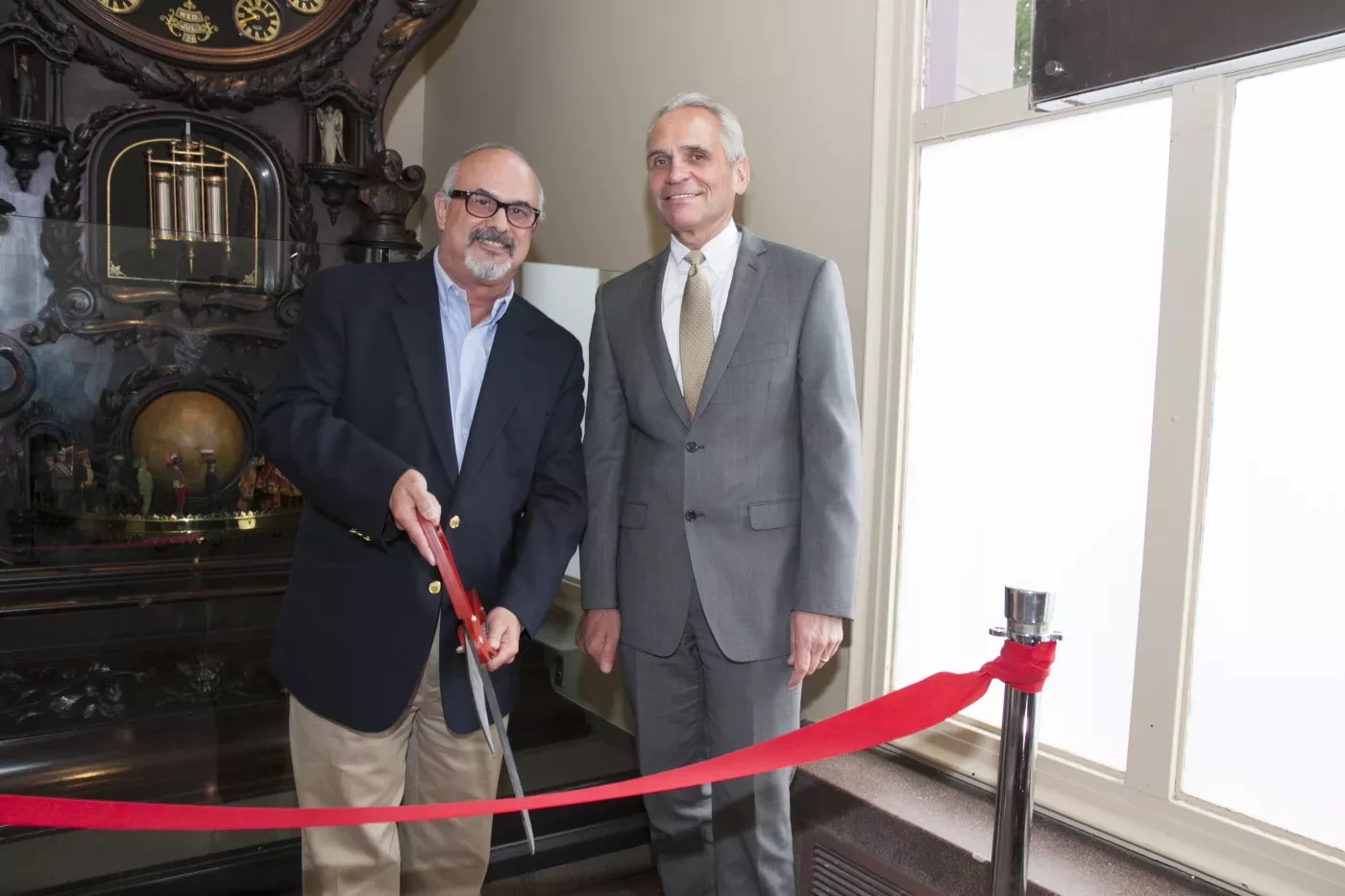 It took Louis Meier, Sr. twelve years to build his clock. Its hand-carved mahogany base, detailed glass clock face and intricate mechanisms made it a Detroit marvel when it debuted in his jewelry store at East Grand Boulevard and Gratiot Avenue in 1904.