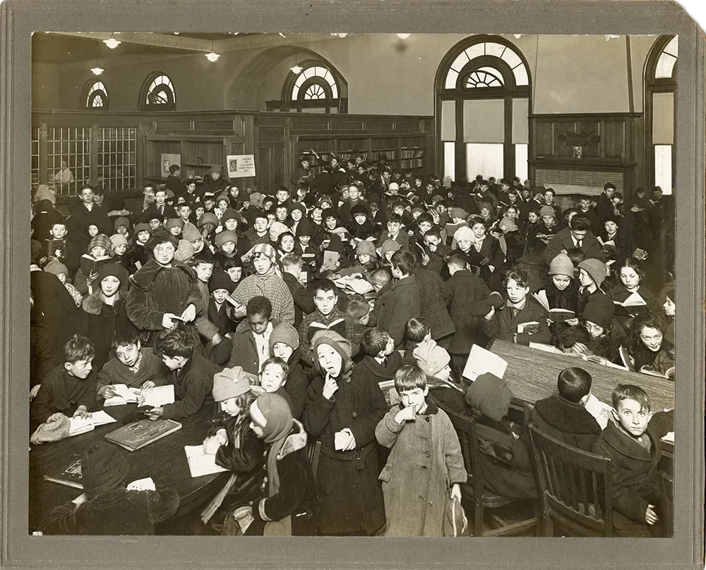 • Children's Story Hour at the Ginsburg Branch of the Detroit Public Library, 1917, courtesy Burton Historical Collection, Detroit Public Library