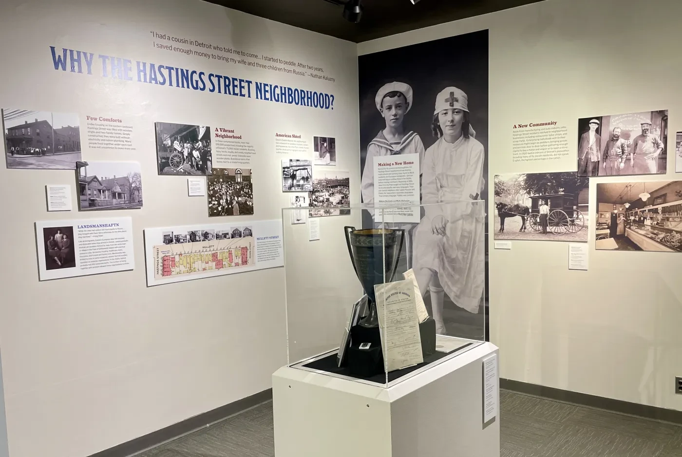 Prior to 1930, Hastings Street, which later became a center for Black culture and commerce, was home to many immigrants, including working-class Jews who fled Eastern Europe driven by the terror and violence of antisemitism. This new exhibit, presented by Jewish Historical Society of Michigan, follows Jewish immigrants’ experiences from Europe to Detroit to Hastings Street. A fascinating blend of artifacts and storytelling gives visitors a rare peek into Jewish life of the period.