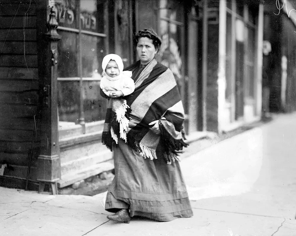 • Woman and baby walking in front of a Kosher butcher shop, 1909, courtesy Walter P. Reuther Library, Archives of Labor and Urban Affairs, Wayne State University