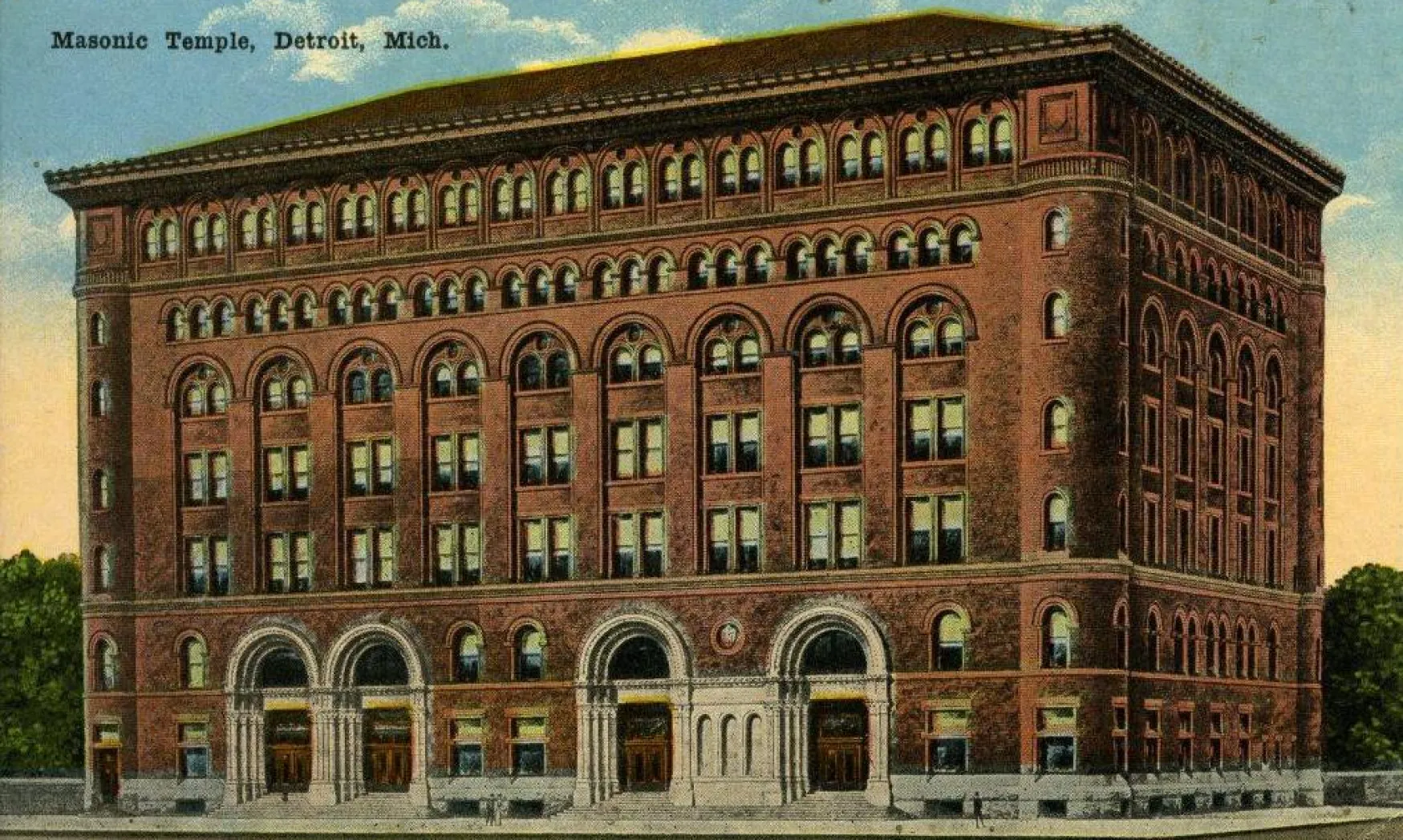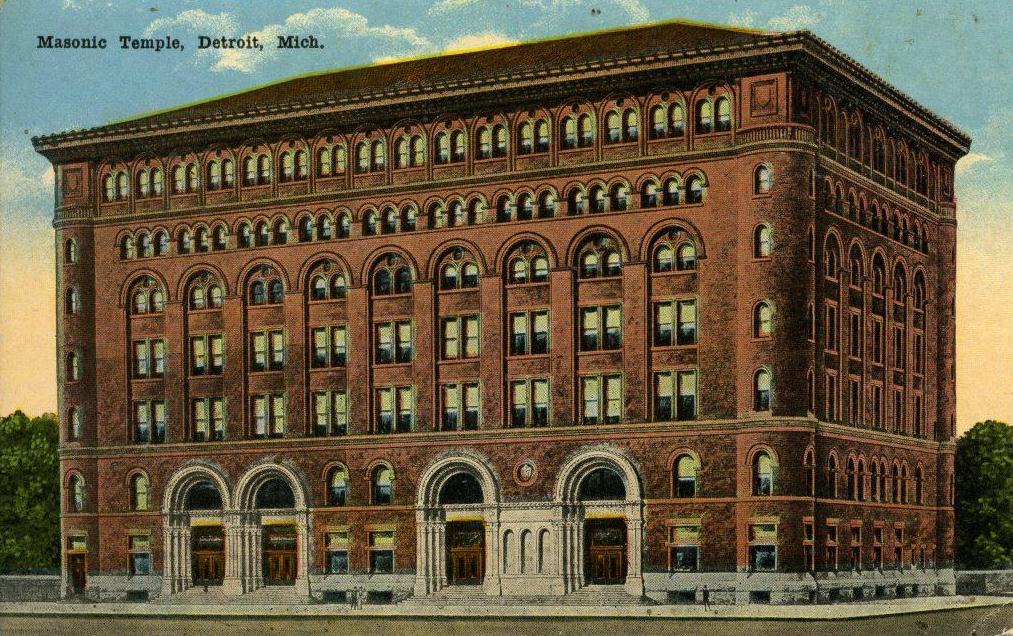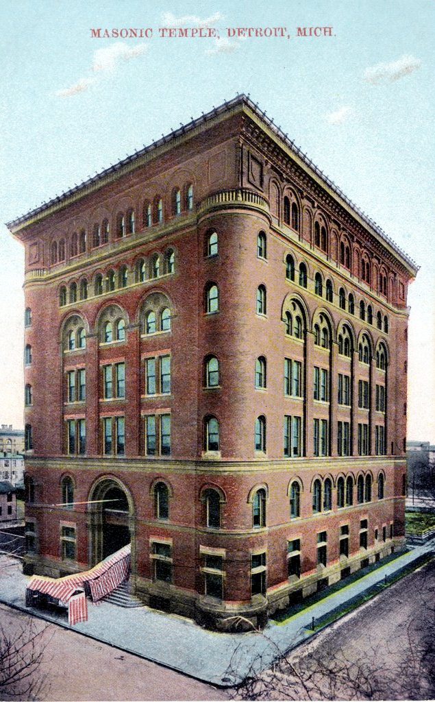 In the third installment of our series on proposals for buildings in the city which were never built, we find a situation in which we clearly got the better deal. One of the city’s architectural jewels, the Masonic Temple, almost did not get built! Rather than building their 1037 room temple off of Cass Park in 1922, the city’s Masons nearly widened their cramped 1892 building at Lafayette Boulevard and First Street. They bought the surrounding lots to do so, and postcards were even produced showing the building expanded to three times its width. Thankfully for years of concert-goers, roller derby enthusiasts, and anyone who’s ever gone on one of the Detroit Historical Museum’s Behind the Scenes tours of the structure, they opted to move.