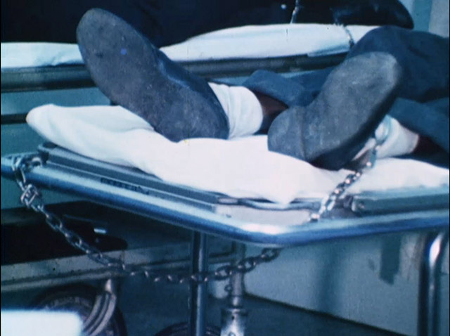 A patient at Detroit General Hospital is shackled to his gurney.
