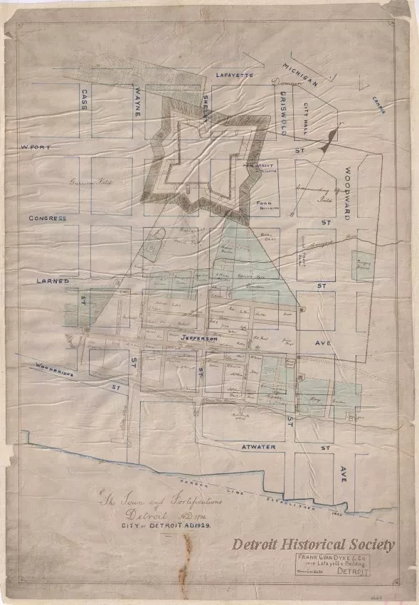 Though the American Revolution was resolved in 1783, it wasn’t until 1796 that Detroit officially came under American control, and the fort became known as Fort Detroit. Following the War of 1812, which saw Detroit captured by the British and later recovered, the fort’s name was changed to Fort Shelby, after Governor Isaac Shelby of Kentucky, who assisted in regaining Detroit.For reference, the fort’s center point was, appropriately, at the intersection of current-day Fort and Shelby streets. After 1813, Fort Shelby slowly fell into a state of disrepair, and was given to the City of Detroit in 1826, which dismantled the fort the following year.