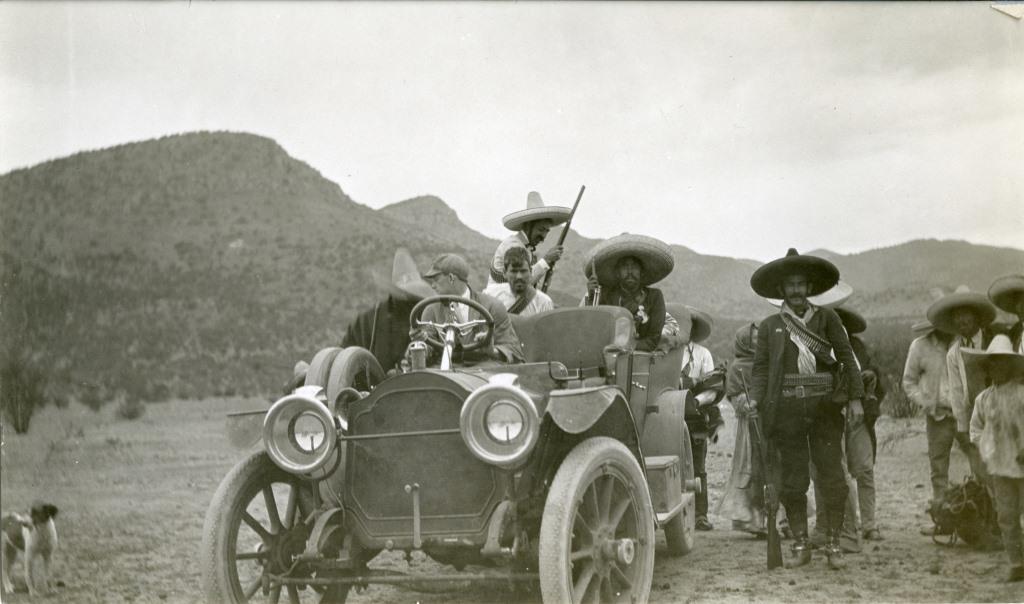 The contributions made by the Packard Motor Car Co. during World War II are well known. Less is known, however, about the small role that a single Packard automobile played in the Mexican Revolution. This image is part of a series which depicts a Packard automobile, driven by an American driver, surrounded by armed Mexican revolutionaries. Two letters accompanying the photographs shed some light on the circumstances surrounding the images, and the reception of the photographs by a Packard executive.