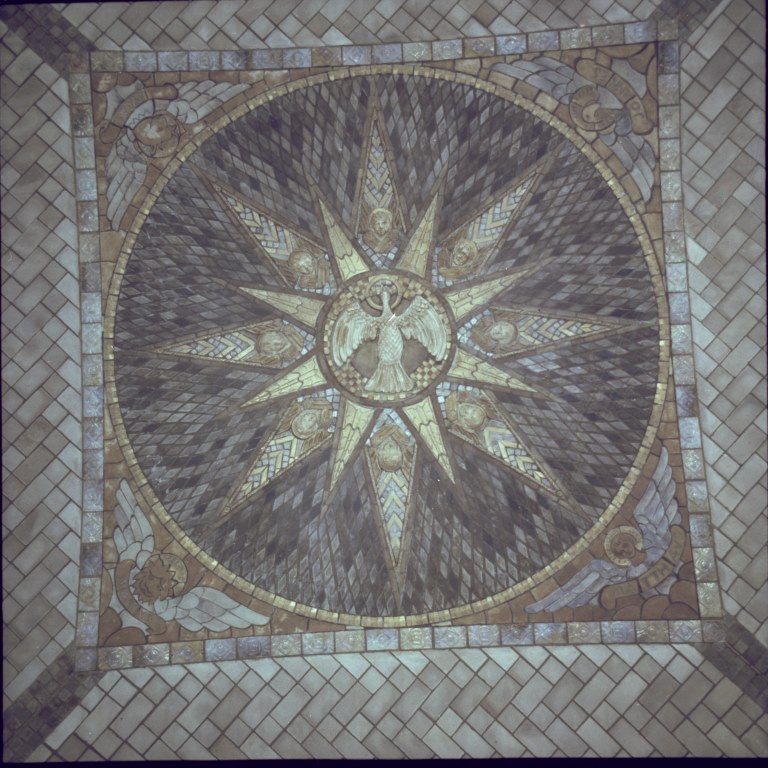 This Pewabic mosaic is installed above the altar of the crypt church within the National Shrine of the Immaculate Conception.