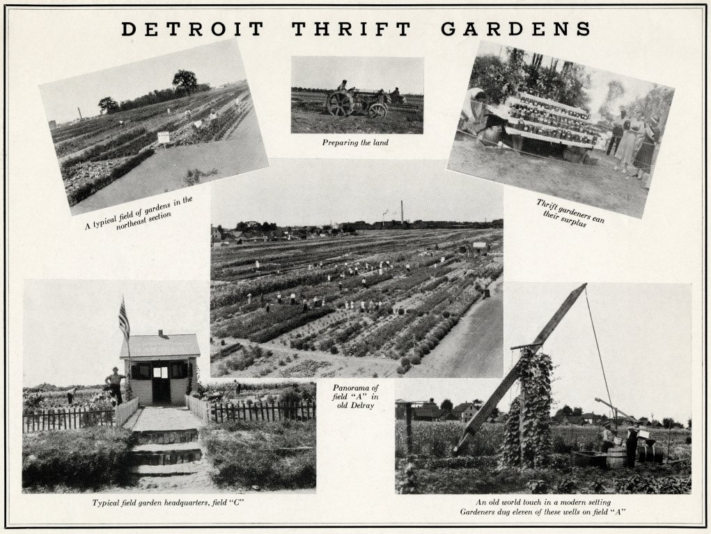 Detroit’s current availability of vacant land has made it a popular place for urban farming, but this is not a new phenomenon brought about by abandoned neighborhoods and diminishing population. During the Great Depression, Mayor Frank Murphy suggested a program that would eventually become the Detroit and Wayne County Welfare Relief Administration’s Thrift Garden Project. Started in 1931, it sponsored vegetable gardens for both “families in relief” and “needy borderline families”.