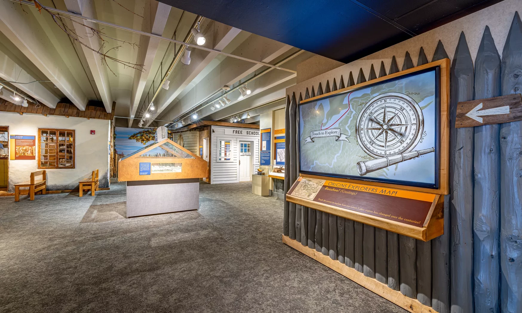 Visited by thousands of school aged children annually, the exhibition was revised first with an eye toward physical accessibility. The early settler’s cabin was enlarged and its artifacts placed at a more comfortable eye level for young visitors. The cabin’s entrance was made ADA-accessible with the addition of a new ramp, and items were moved in the center of the gallery to create a wider walkway for guests.