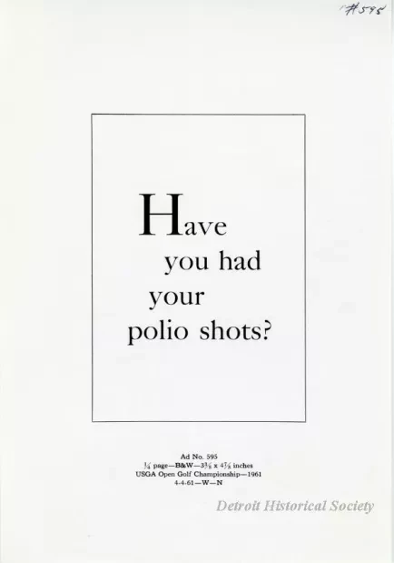 Black and white print advertisements for polio vaccine produced by Parke-Davis.