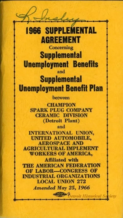 1966 Supplemental Agreement Concerning Supplemental Unemployment Benefits and Supplemental Unemployment Benefit Plan between Champion Spark Plug Company Ceramic Division (Detroit Plant) and International Union, United Automobile, Aerospace [...]