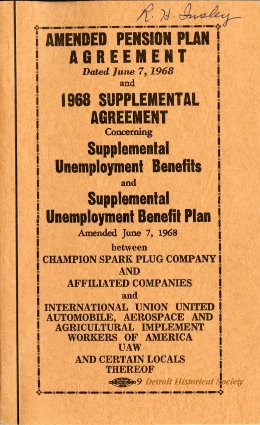 Amended Pension Plan Agreement Dated June 7, 1968 and 1968 Supplemental Agreement Concerning Supplemental Unemployment Benefits and Supplemental Unemployment Benefit Plan Amended June 7, 1968 between Champion Spark Plug Company and Affiliated [...]