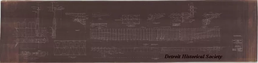 One sepia copy of a drawing entitled "Aircraft Training Vessel, IX-64 (Ex. Seeandbee), Flight Deck Structure." The copy is printed on vellum paper and shows plan and profile views of the flight deck structure that is being added to the former sidewheel steamship, SS Seeandbee, of the Cleveland & Buffalo Transit Company. The title block in the lower right corner indicates that the drawing was prepared by the Bureau of Ships, Navy Department at scales of 1/8 inch and 1/4 inch = 1 foot and is dated March 25, 1942. The drawing is shown as "508930."