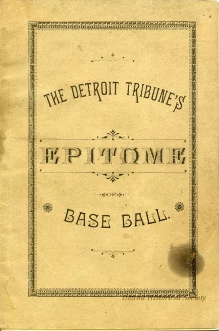 Thirteen chapter booklet published by the Detroit Tribune about the Detroit Wolverines and the National League. Includes schedules and player statistics.