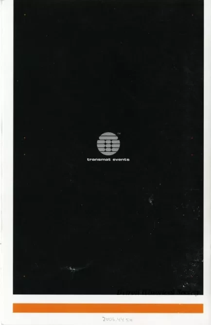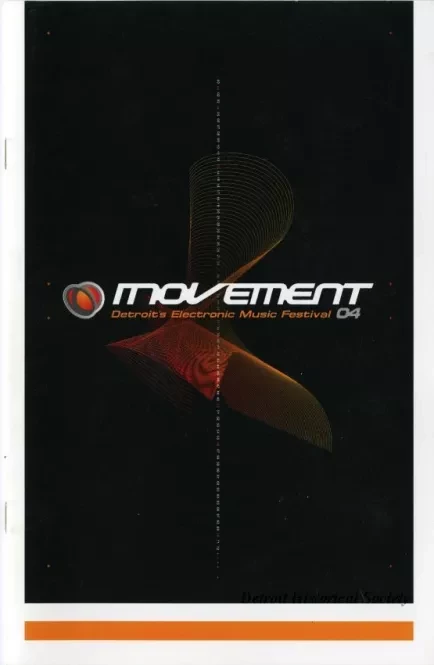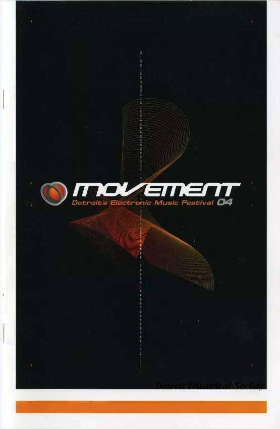 Press kit booklet for Movement 2004, "Detroit's Electronic Music Festival," held on May 29, 30, and 31 at Hart Plaza. The booklet contains a list of performers including Detroit artists Amp Fiddler, Kelvin and Kenny Larkin, Kevin Saunderson, Kevin Reynolds, Mike Huckaby, and Stacey Pullen, as well as a list of sponsors, information on a DVD and CD Box-set for the event, the pre-party at Centre Street Lounge, the stage highlighting Dutch artists, a Detroit Techno satellite radio show, the group responsible for the show's light show, Derrick May performing as part of Movement NYC in New York, and a discussion about electronic music at the Art Gallery of Windsor. The logo for Derrick May's Transmat Events is on the back cover.