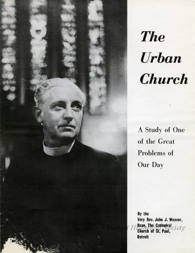 Booklet by the Very Rev. John J. Weaver, Dean of St. Paul's Episcopal Cathedral about the need for increased funding. Contains black and white photos. The address was previously given to the Woman's Auxiliary of Christ Church Grosse Pointe, and to the Diocese of Buffalo at Trinity Church.