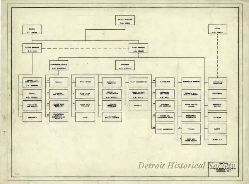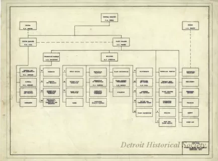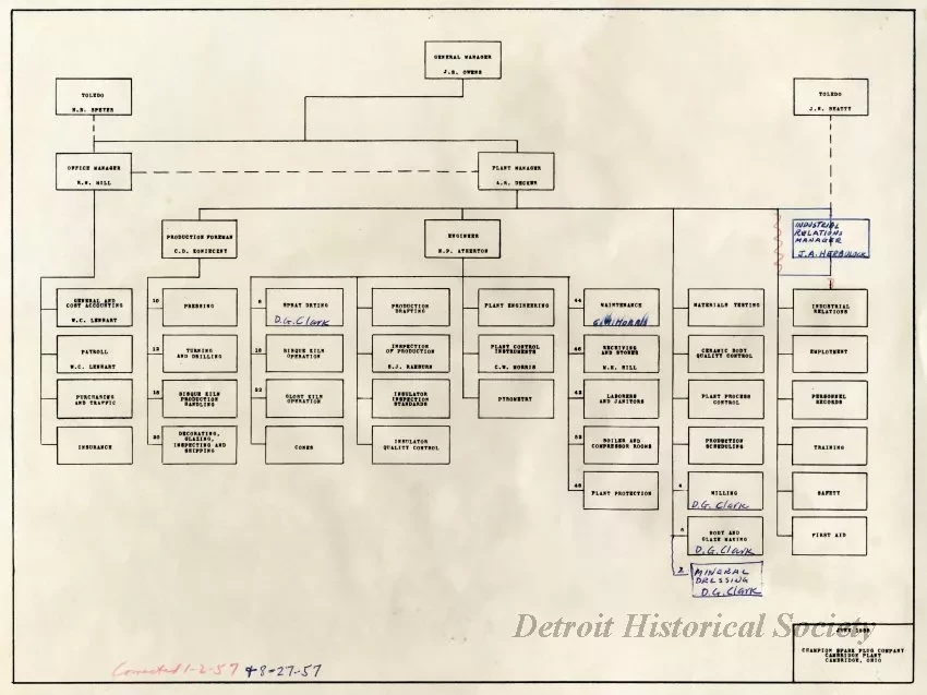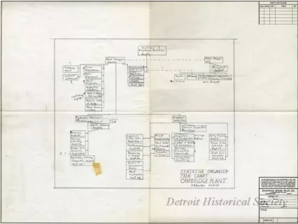 Organizational chart for the Champion Spark Plug Co. Cambridge Plant.