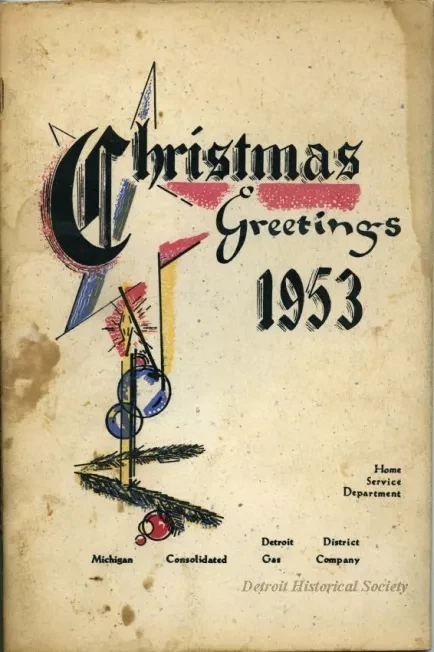 Color illustrated holiday cookbook published by the Home Service Department, Detroit District, Michigan Consolidated Gas Co.