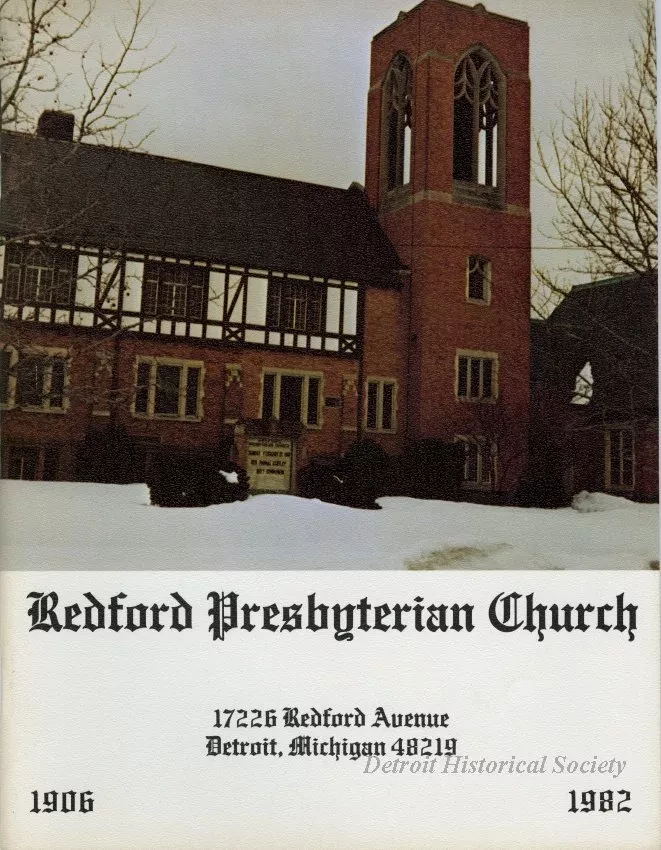 Request ImageDirectory for Redford Presbyterian Church. Contains black & white and color photos, and a timeline of church history.