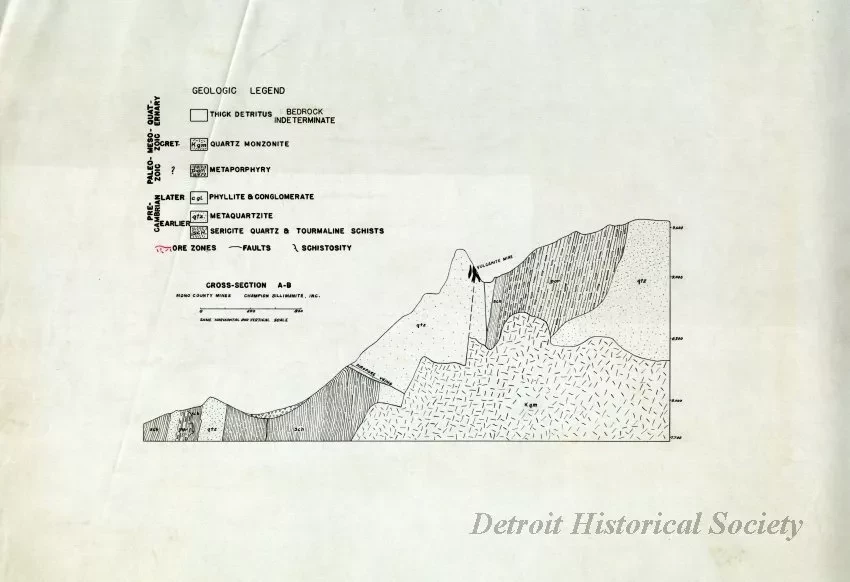 Cross-section of the Champion Sillimanite Co.'s mines in Mono County, California.