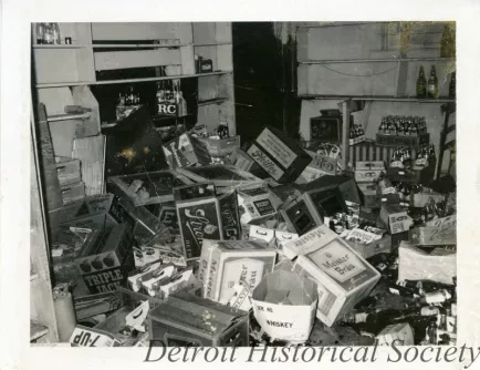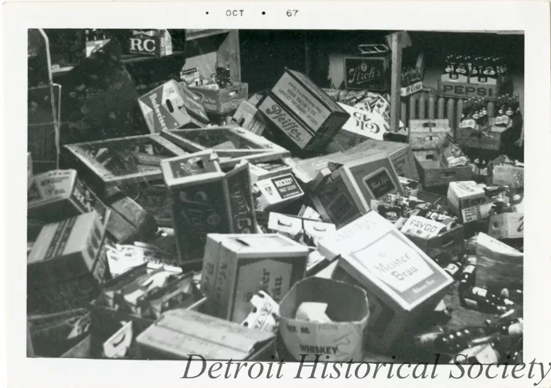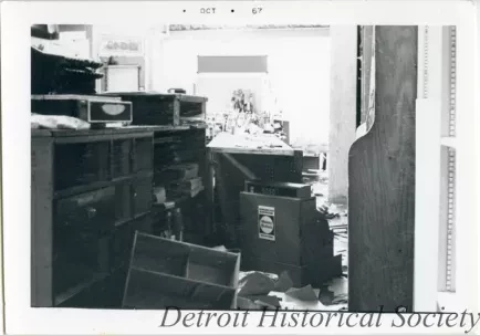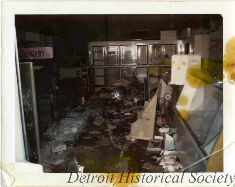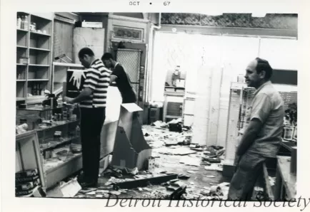 Nothing happened until after I left. We went out to dinner. After dinner I called up the Guardian Alarm and they said—they must have been so busy they didn’t know what the hell they were talking about. When I told them who I was and where the store was located, she said, “Oh, you’re okay. Don’t worry about it.” After we finished eating I said I’m going to take a ride down to the store and there was nothing left. You saw the pictures. We just left. I had merchandise in a vestibule leading down to the basement and had boxes piled up. Didn’t even unpack yet. I put everything that I could in the car and drove off. Then we were driving down toward Fenkell and there was a Robinson Furniture Store Warehouse and they had broken into that. People had couches on the cars on their hoods, and the police had them all lined up with their hands on the wall. That was funny. They had chairs on their cars that wasn’t even tied down. Then we went down Fenkell, stopped at a light, a bunch of people were on the corner there and they looked at us and I said, I’m getting the hell out of here, and went through the red light. Get out of there.