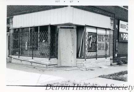 MM: 1967. I was there one week. I was open Monday and closed Sunday. At that time on Sunday you could only sell liquors, it’s Michigan law, you know beer and wine, from 12 on and people going to church and this and that. That’s when we opened at 12 o’clock and I started to get phone calls. “Get the hell out of there. They’re rioting on 12th Street.” And I walked outside and I saw fires and smoke down Linwood and people were giving me dirty looks that were passing by. And she had the car. There was no cell phones at that time. I had to wait for her. A black gentleman owned the gas station across the street. He came over and said, “Marv, close up. Get your money; put it into a bag and come across the street. There’s nothing going to happen to you.” Which I did. So I closed around three o’clock and then I had to wait for her.