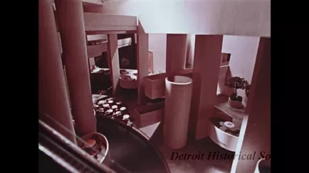 The film then focuses on the layout of the Renaissance Center. He narrator notes that the podium with contain a shopping center, and four office towers will rise from its corners. In the center, the Detroit Plaza will stand as "the world's tallest hotel." The camera pans through models of the central tower's atrium as the narrator describes its features including a rotating cocktail lounge and reflecting pool. The film also explains that the Detroit Center will by topped by The Sundial, a multi-level rotating restaurant at the top of the tower.