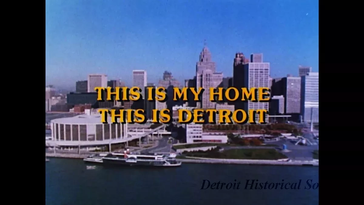 16mm color print of the 1986 Sue Marx production, "This Is My Home, This Is Detroit." The film highlights residents of various neighborhoods throughout the city, including Anna and John McDonald of Elmwood Three, Gertrude Powe of Pingree Street in Virginia Park, Officer Tom Benson and volunteer Susan Hatfield of Detroit Police Department mini station 16 M 3 on Seven Mile Road, Charles H. Smith, Jr. of a beautification project of Oakman Boulevard's greenway, Bronson Gentry of a neighborhood beautification project for young people in Jefferson-Chalmers, Peter and Carol Rich of Rosedale Park. Bill and Carol Harris of New Center Commons, Preston Burke and Anne Wilkinson-Burke of the Riverfront Apartments, and Michael Farrell of the Art House in Brush Park. Mayor Coleman A. Young is also interviewed in the Manoogian Mansion. The film also includes footage of the various neighborhoods and several renditions of the theme song "Detroit, My Home." The song is performed in the introduction by blues singer Alford "Chicago Pete" Harrell and guitarist Clarence Walton as Harrell is fishing at Chene Park. A group of children, including those of Chicago Pete perform part of the song on the sidewalk during an early montage. Later jazz musicians Larry Lamb and Herbie Williams perform an instrumental version amid the new construction of the Clement Kern Gardens housing development and the historic homes along Bagley Street in Corktown. The film closes with the Blue Pigs' performance of the song at Detroit Edison and GranDetroit's 1985 Bright and Beautiful block club contest award ceremony.