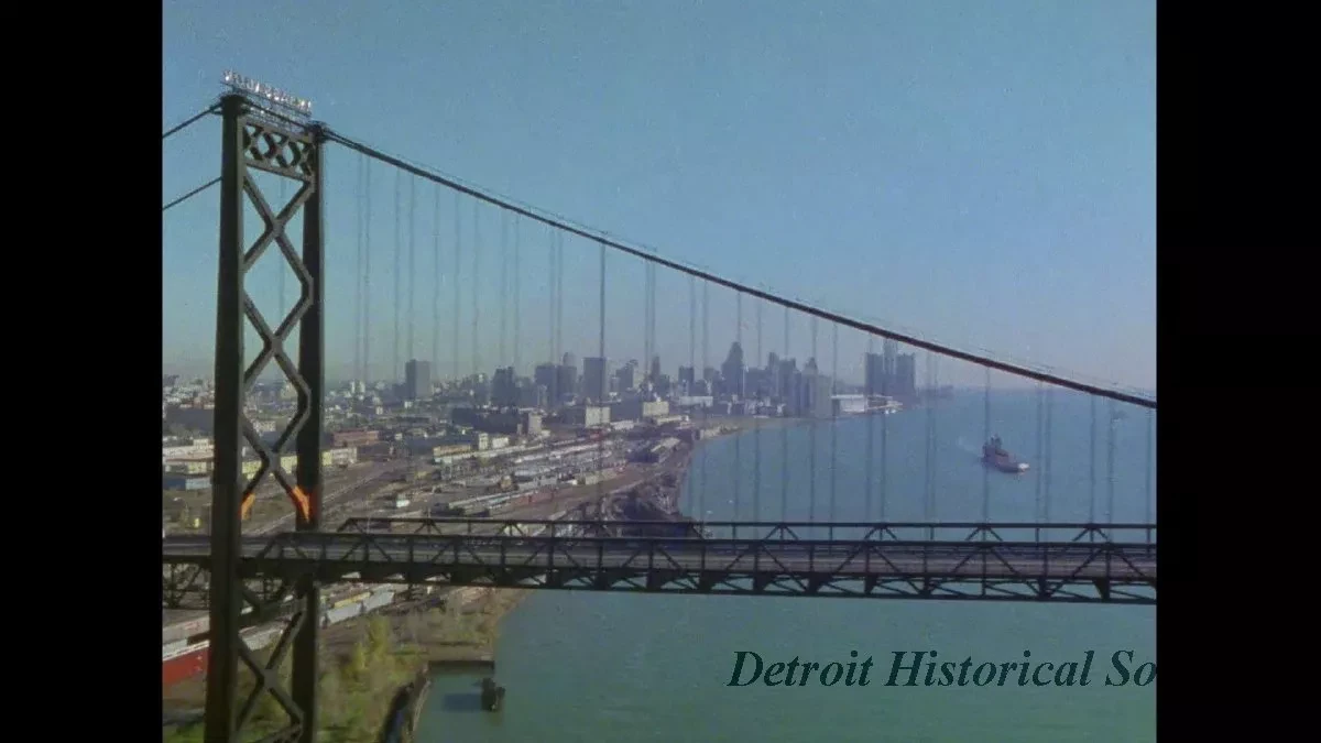 The reels also contain several unique aerial shots. There is a fly-by of the Ambassador Bridge. Another aerial shot begins over East Grand Boulevard near Jefferson Avenue facing west toward the partially demolished Uniroyal Tire Plant, and continues along the MacArthur Bridge, which is undergoing repairs. There are also fly-overs of the Renaissance Center and of Lafayette Park.