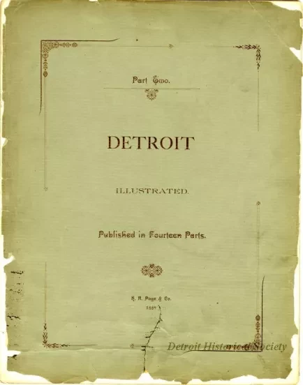 One folio series entitled, "Detroit Illustrated," that was published in 14 parts by H. R. Page & Company of Chicago. This folio, Part Two, has a gray/green paper cover that is printed in brown text. There are four interior pages which include sepia-toned photographic images that are entitled as follows:
