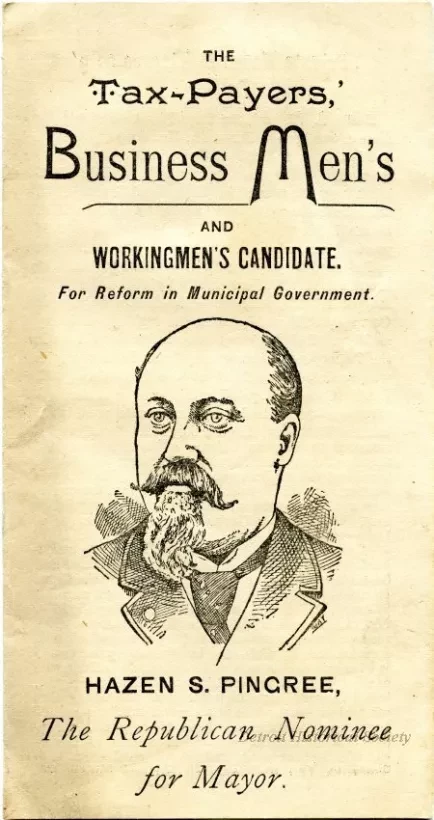 The Tax-Payers', Business Men's and Workingmen's Candidate. For Reform in Municipal Government. Hazen S. Pingree, The Republican Nominee for Mayor.