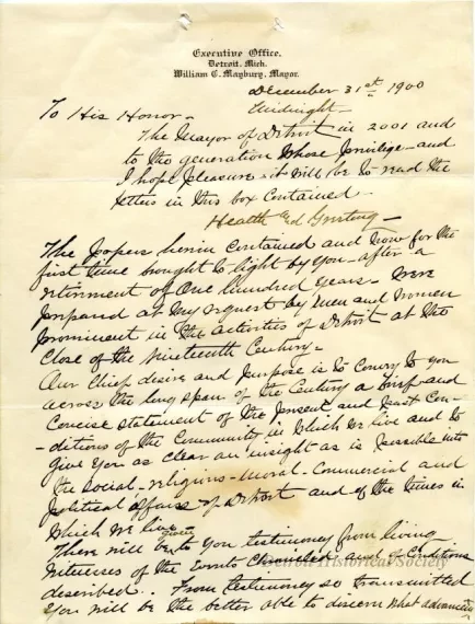 The Mayor of Detroit in 2001 and to the generation whose privilege - and I hope pleasure - it will be to read the letters in this box contained.