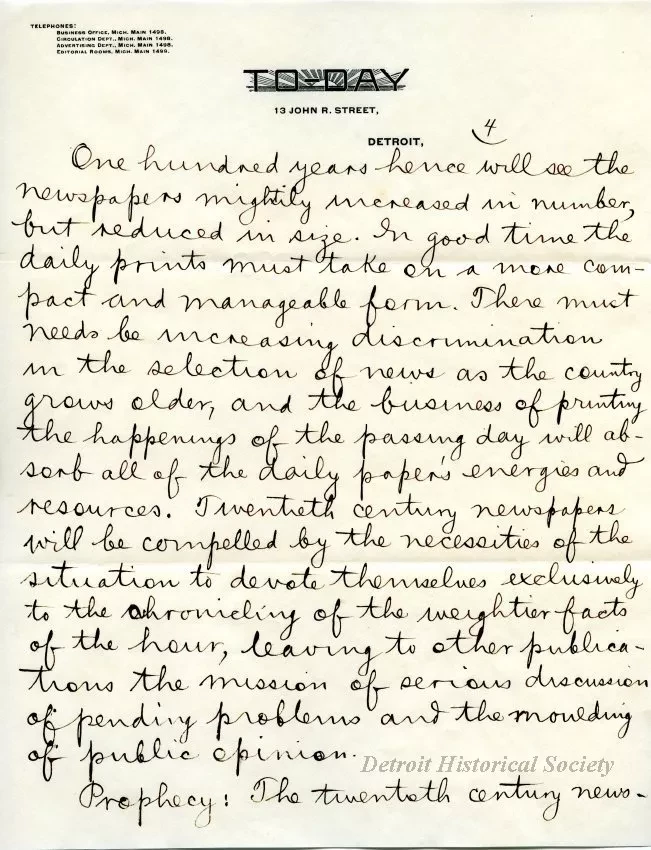 Prophecy: The twentieth century newspaper will be a newspaper and nothing else, and there will not be so much of it.