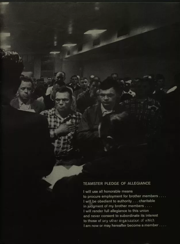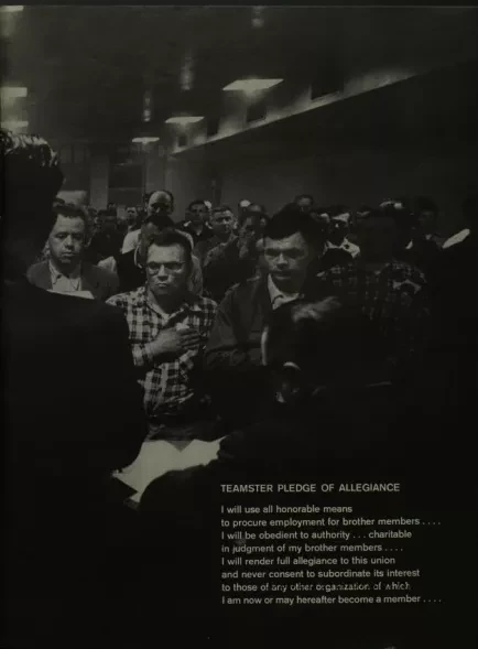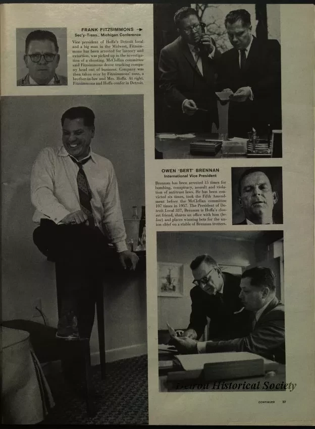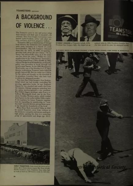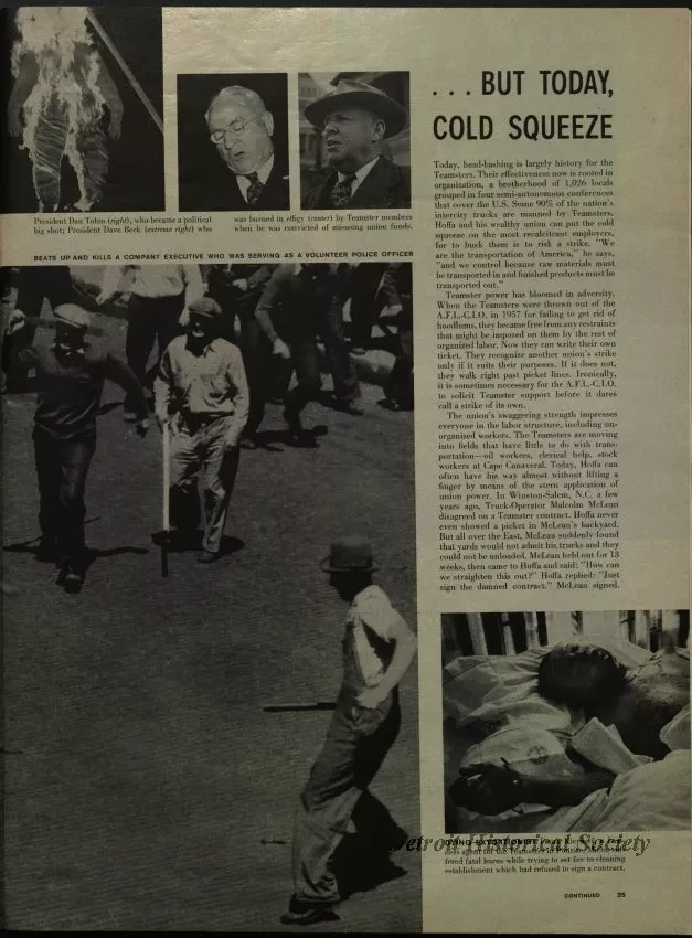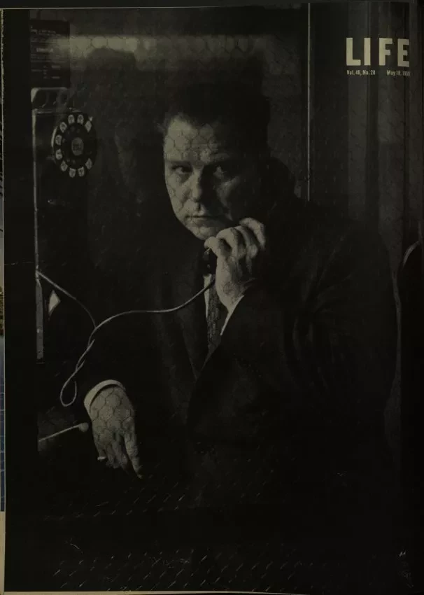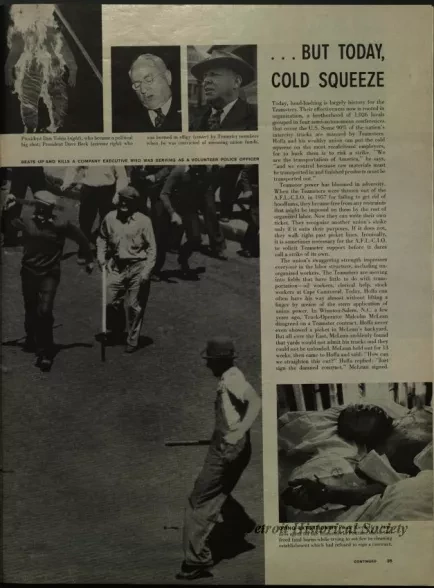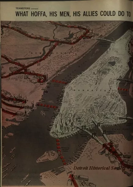 May 18 1959 issue of Life Magazine containing the cover story, A National Threat: Hoffa's Teamsters, Part 1: Sources of a Union's Uncurbed Power." Jimmy Hoffa is pictured on the cover reflected in a truck's rear view mirror against a background of other trucks, with the caption "Jimmy Hoffa: Teamster Boss in the Field."