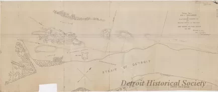 Tracing from a Map of Springwells by Lieuts. Macomb & Warner, T.E. [Topographical Engineers], 1841, with the Addition of Outlines of Fort Wayne and Public Grounds, Sept., 1865.