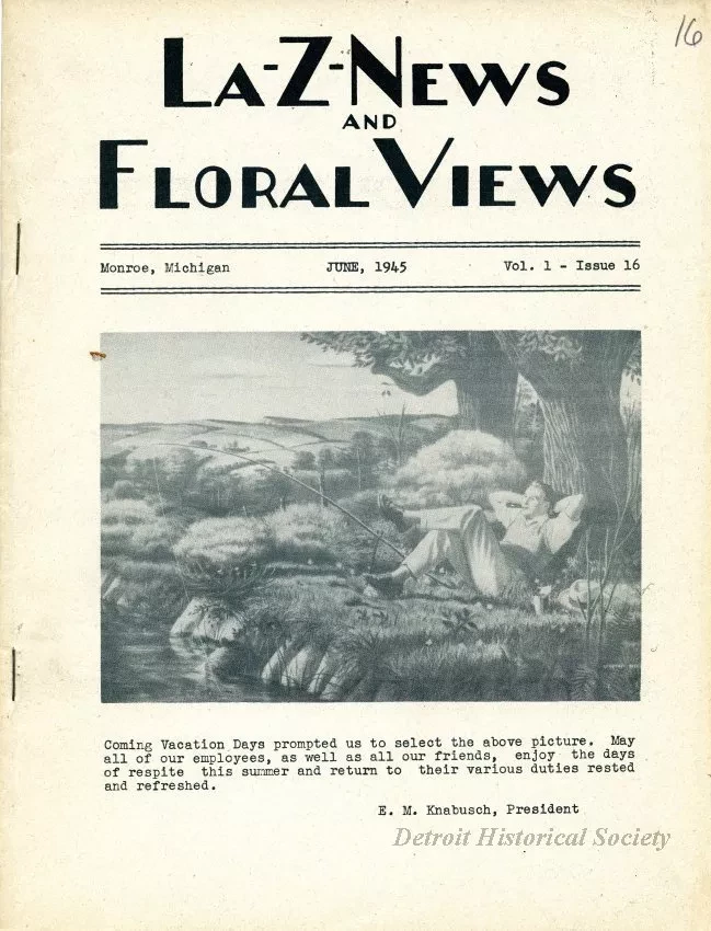 One copy of the "La-Z-News & Floral Views" newsletter for employees of the La-Z-Boy Chair Company and the Floral City Furniture Company. The typewritten newsletter, dated June, 1945, is 20 pages in length and contains company announcements as well as information about upcoming/recent events, new employees, retirements, and humorous short stories. Several black and white photographic images are included with the text.