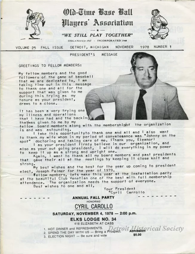 Old-Time Base Ball Players' Association, Vol. 25, No. 1, November 1978