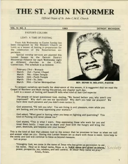 Issue of "The St. John Informer", newsletter of St. John's C.M.E. Church.