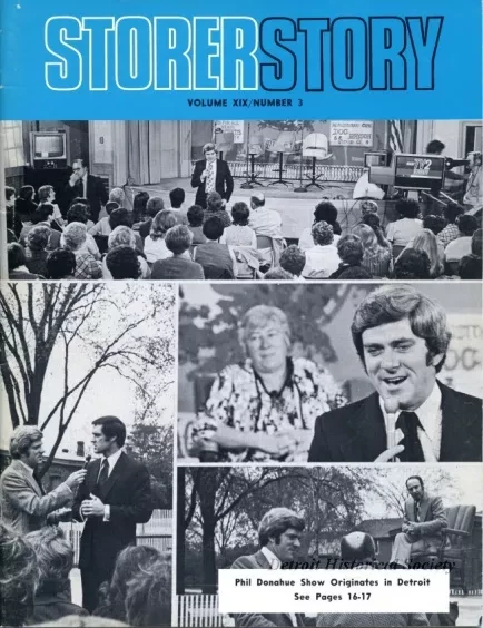 One copy of the employee quarterly newsletter, "The Storer Story," dated June, 1973, for employees of the Storer Broadcasting Company. The front cover is printed in blue and black text on heavyweight white paper and features several black and white photographic images of the Phil Donohue Show. The interior contains 35 pages of black printed text on white paper with short articles about employee promotions, awards, programs, and events. Many black and white photographs are included with the text. WJBK (Detroit) is mentioned in several articles.