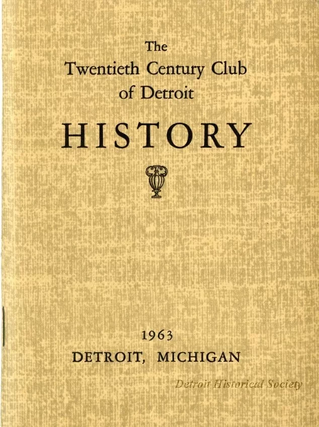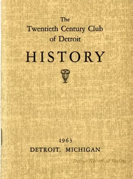 Small staple-bound booklet detailing the history of the Twentieth Century Club, a cultural and philanthropic Detroit women. Also included is a four-page insert listing the club's charter members.