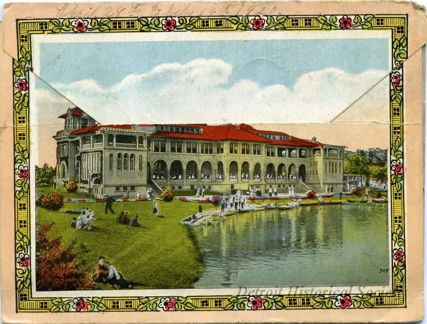 The 20 images depicted in the fold-out include skyscrapers, street views, parks, Belle Isle, and the Steamer "City of Detroit III".