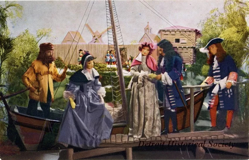 One of 14 dioramas portraying episodes in Detroit history. Presented to the Detroit Historical Museum by the J. L. Hudson Company.