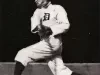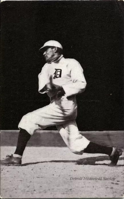 Black and white postcard depicting Detroit Tiger Bill Coughlin swinging a bat.