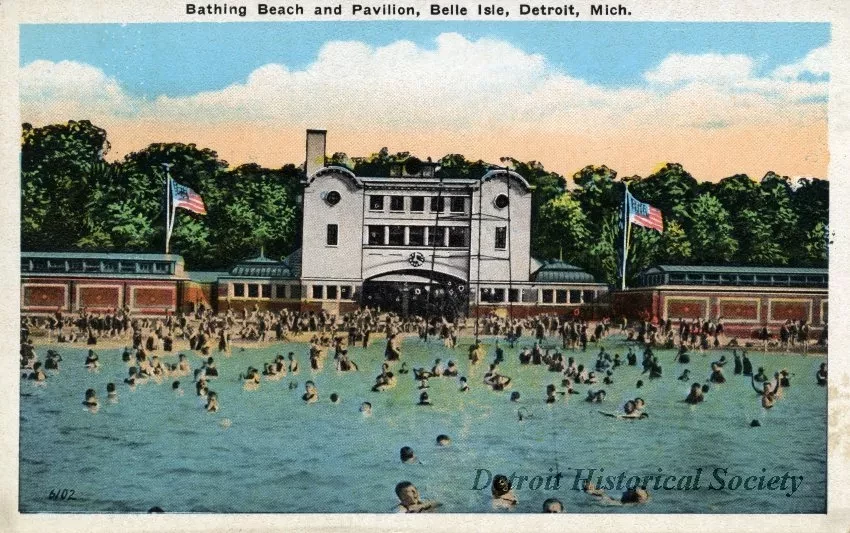 Bathing Beach and Pavilion, Belle Isle, Detroit, Mich.