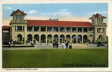 Printed on verso: Casino, Belle Isle, Detroit, Mich. The Casino, where Luncheons are served afford an ideal resting place where you can view the passing freighters and excursion boats. It is located on the lower end of the island and commands a beautiful view of the main canals and thoroughfares.