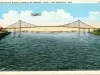 Color illustrated postcard depicting the Ambassador Bridge spanning the Detroit River.