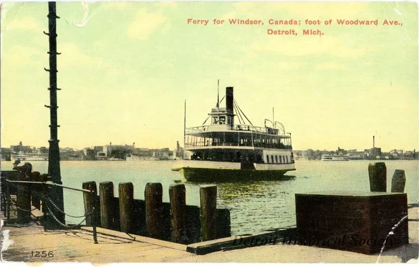 Printed on verso: Ferry for Windsor, Canada. These ferry boats run from their dock at foot of Woodward Avenue across the Detroit River to Windsor, Canada and carry many hundred passengers daily.