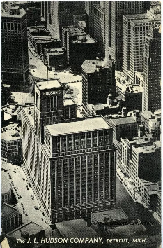 Printed on verso: The J. L. Hudson Company was founded in 1881 by Joseph Lowthian Hudson. The first Hudson store was a men's and boy's clothing store. Hudson's today is one of the world's largest and finest department stores.